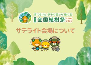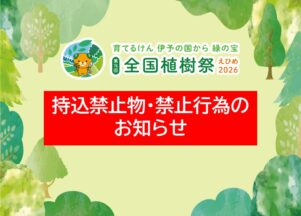 全国植樹祭は、豊かな国土の基盤である森林・緑に対する国民的理解を深めるために、公益社団法人国土緑化推進機構と都道府県との共催により行う国土緑化運動の中心的行事です。愛媛県では昭和41年以来60年ぶり2回目の開催となります。