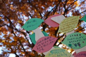 秋晴れで紅葉が綺麗な中、皆さんの愛レターで彩られたツリーオブジェがとっても美しかったです😊