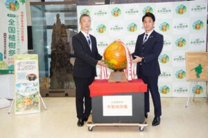 12月3日(水)に新居浜市で木製地球儀の引渡し式を開催しました。