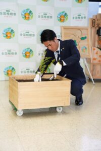 また、木製パズルの新居浜市ピースはめ込みと記念植樹も実施しました。