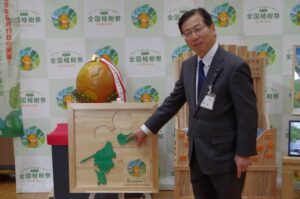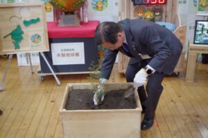 また、木製パズルの西条市ピースはめ込みと記念植樹も実施しました。
