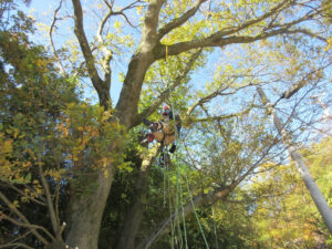 | 令和7年7月20日(日)開催の第1回では、10名の参加者が高木を中心に樹木の分類をしながら園内を巡って自然に親しみ、全国植樹祭のPRも行われました。 |