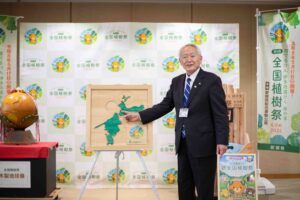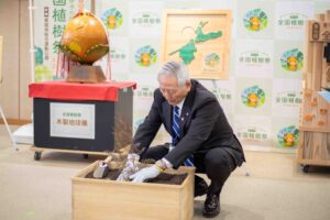 また、木製パズルの東温市ピースはめ込みと記念植樹も実施しました。