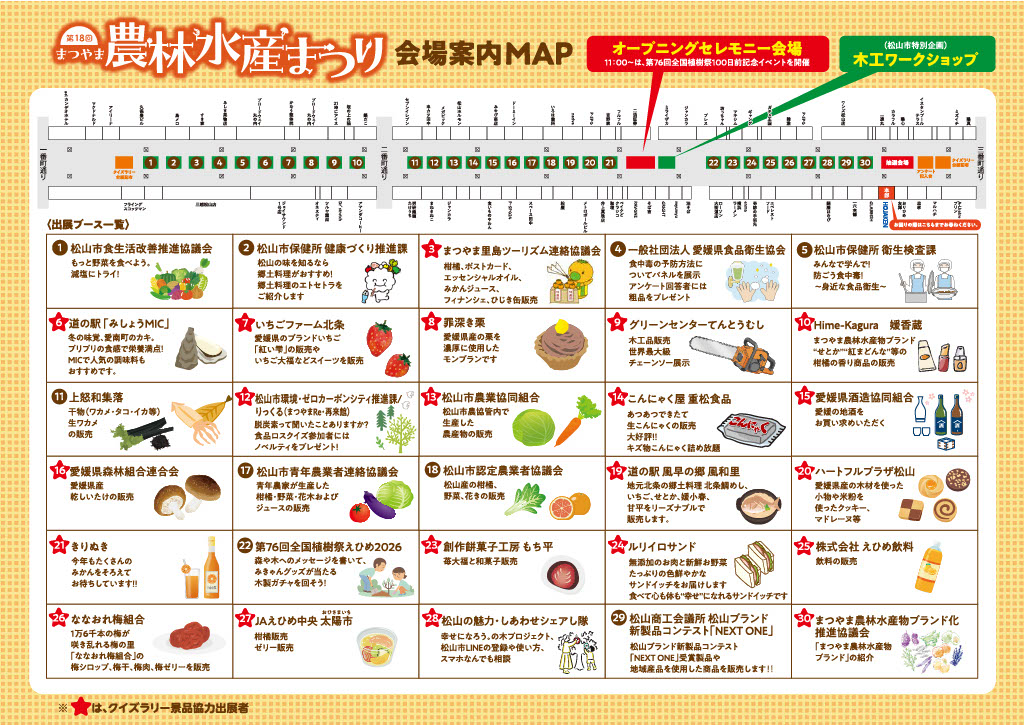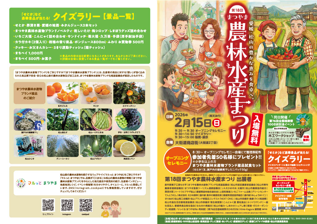 「第76回全国植樹祭えひめ2026」の開催100日前を記念して標記イベントを、第18回まつやま農林水産まつりに併せて2月15日(日)に大街道商店街で行います。